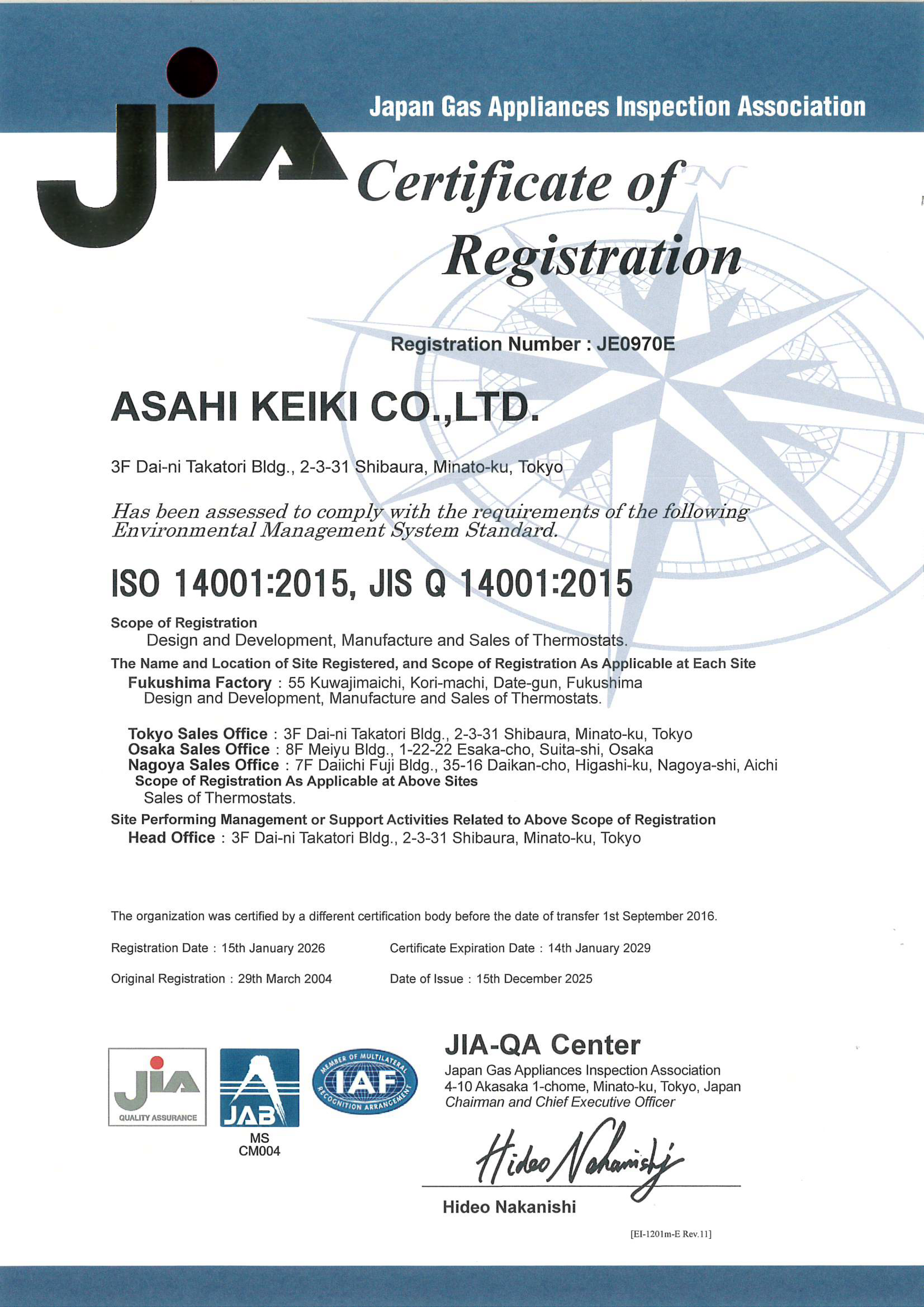 2026年1月1日 旭計器株式会社 代表取締役社長 多賀 新吾
