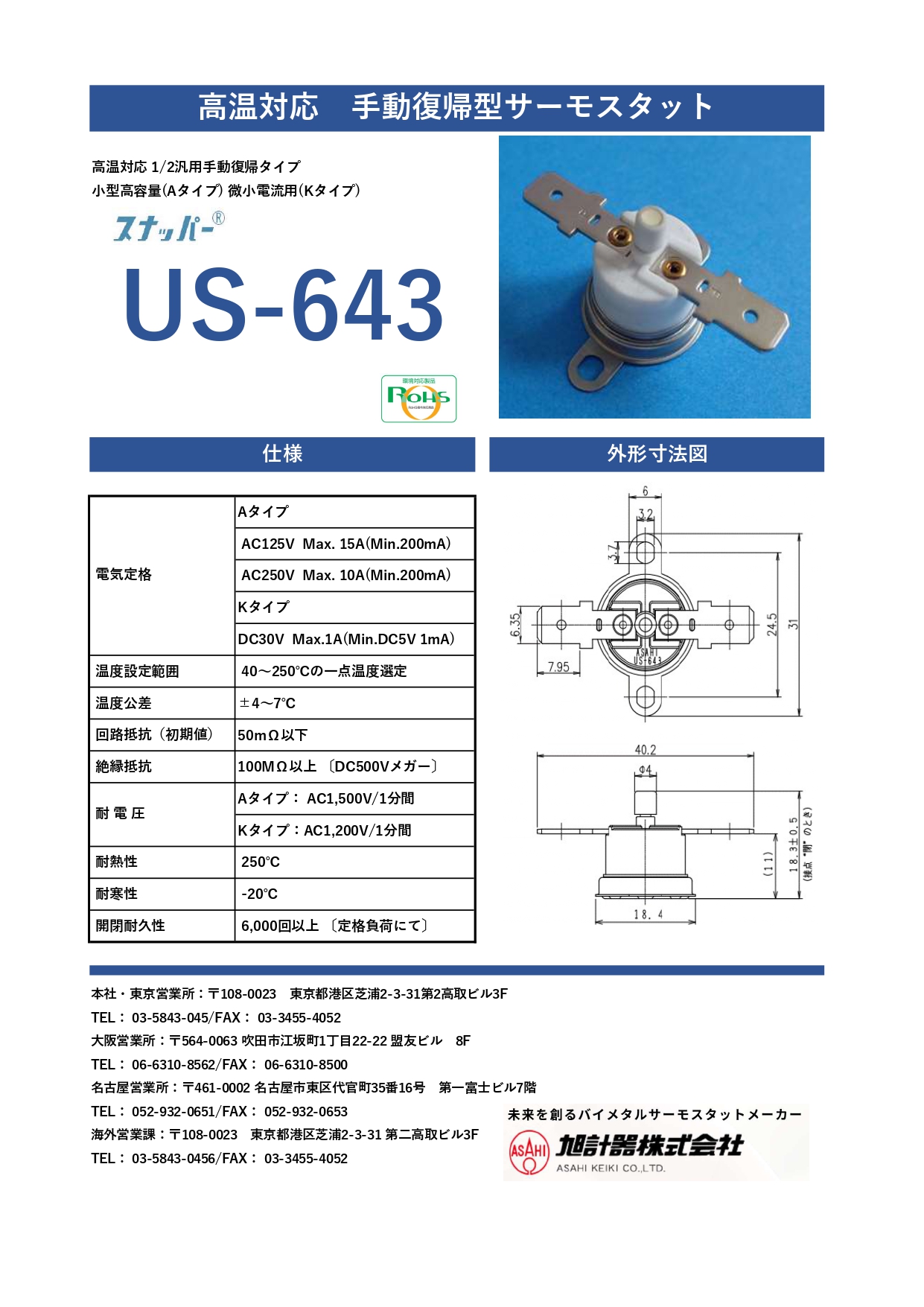 この度、手動復帰型バイメタルサーモスタットの新モデル「US-643」に関する情報を掲載いたしました。